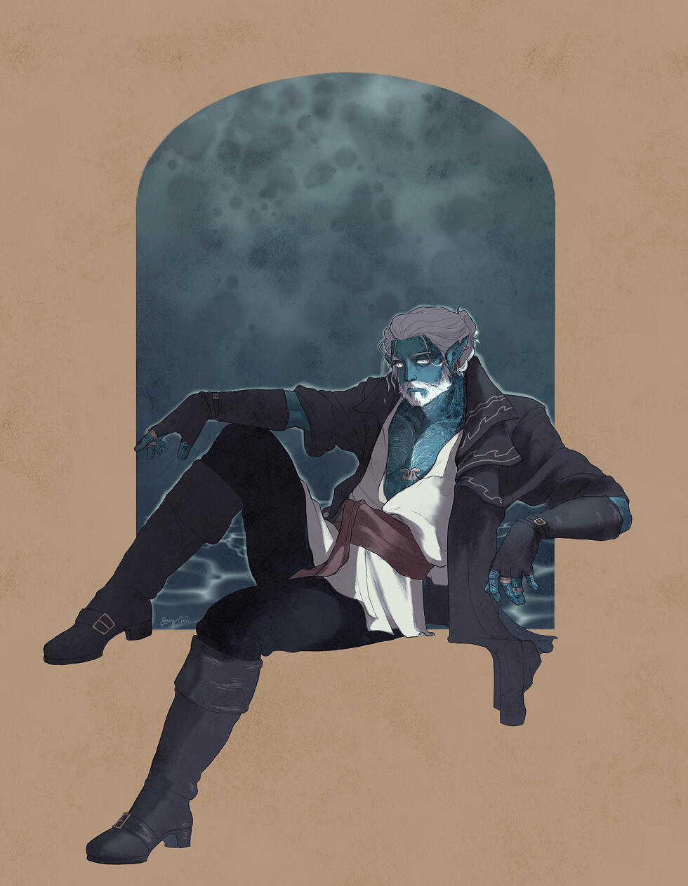 You provide your character references, personality / items related to them / mood / etc for your character (ex: detective who's estranged from his partner. steampunk, goggles), and I will fill in the rest of the details to create art!Any potential props / backgrounds / details are included in the base price.
